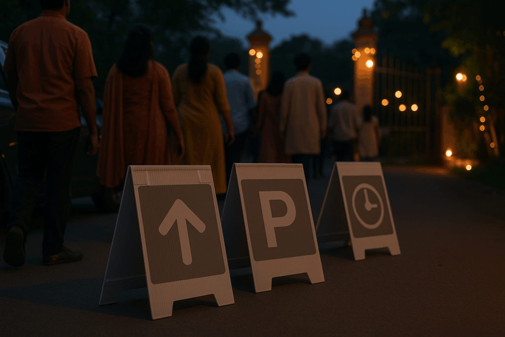 Community signage: Light A-frames for queues, parking, timings.